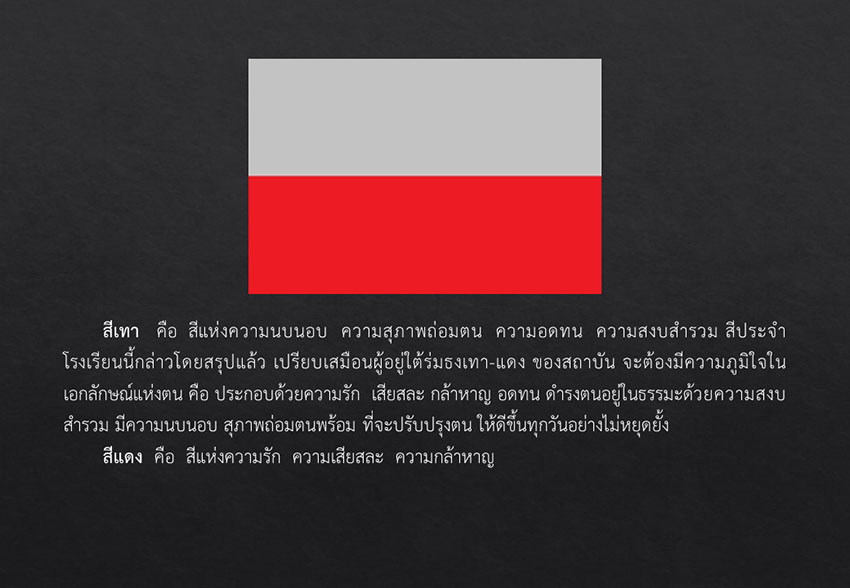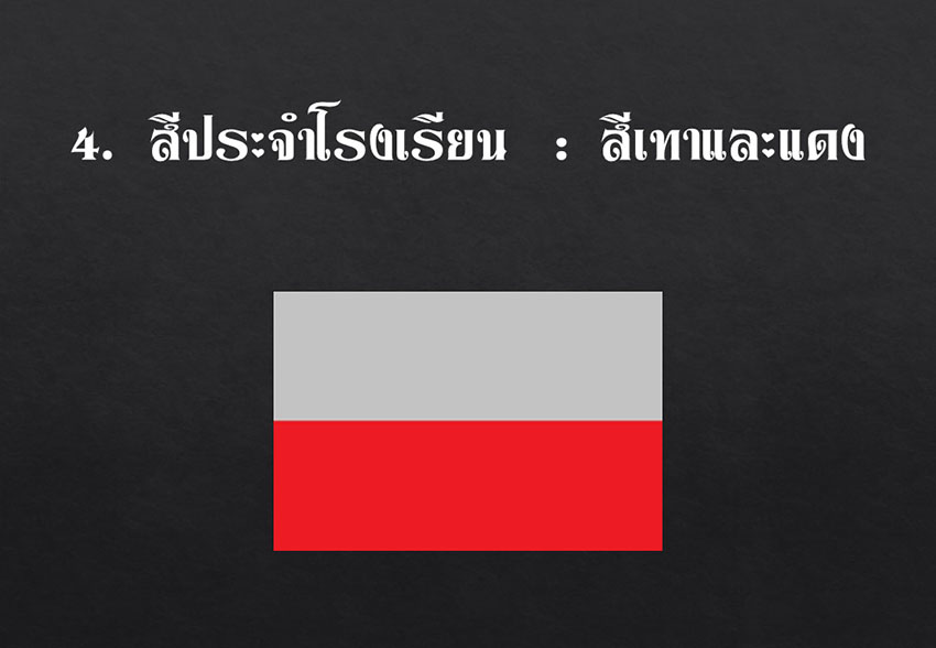4. สีประจำโรงเรียน : สีเทาและแดง(ต่อ)